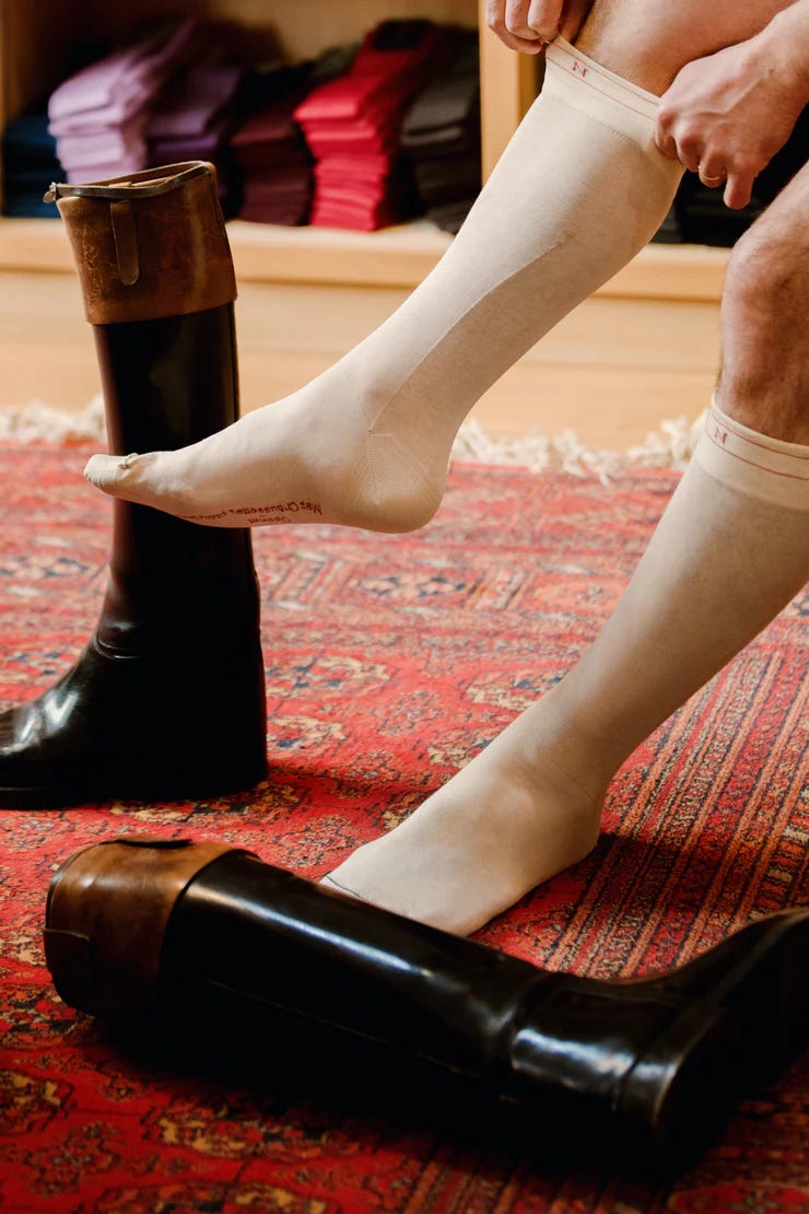Today’s article is inspired by a conversation Raphael and I had over breakfast one morning. Somehow, the topic of my socks got brought up, and I mentioned that they were a Christmas gift from my wife: silk écru socks modeled after a pair worn by Napoleon. What better gift could there be for a lover of both history and menswear?