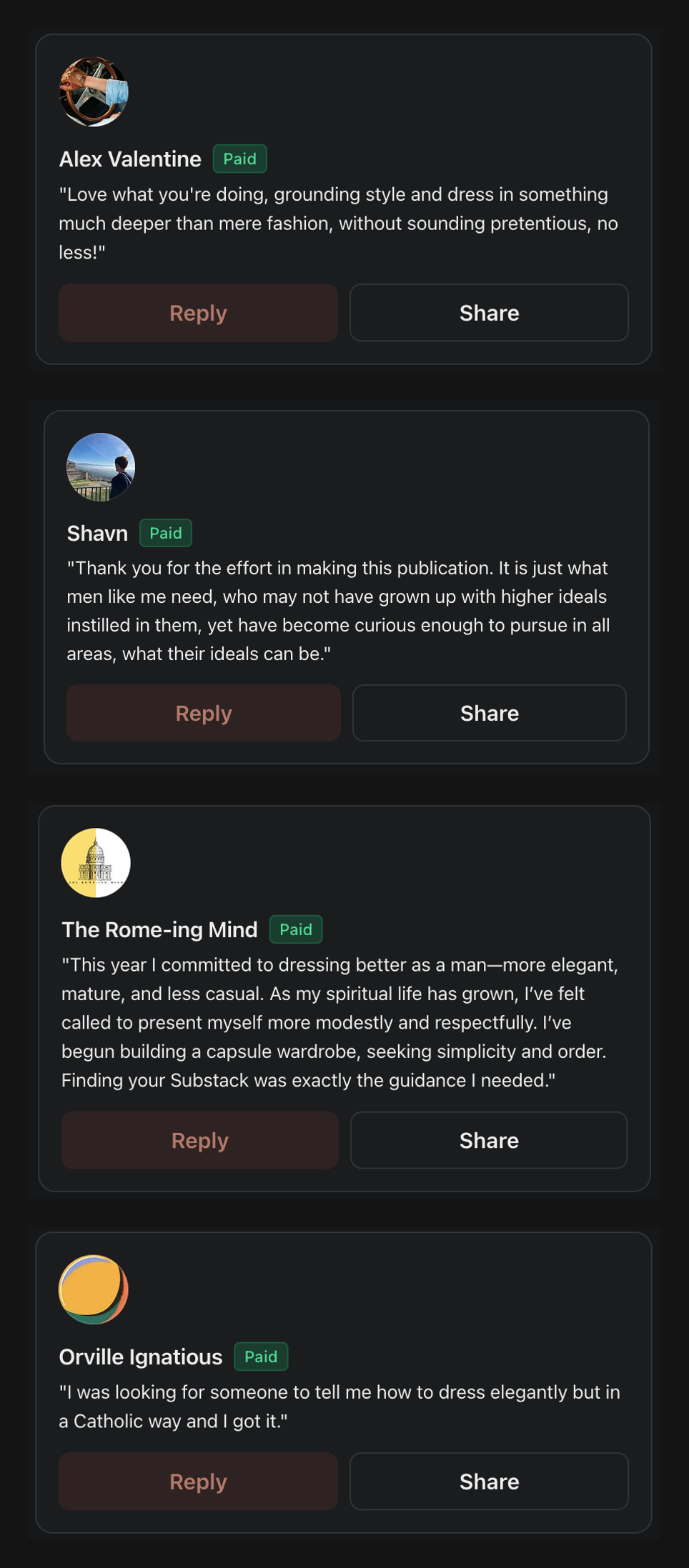 Our paid readers have been especially supportive. Here are some of their comments, shared with permission: