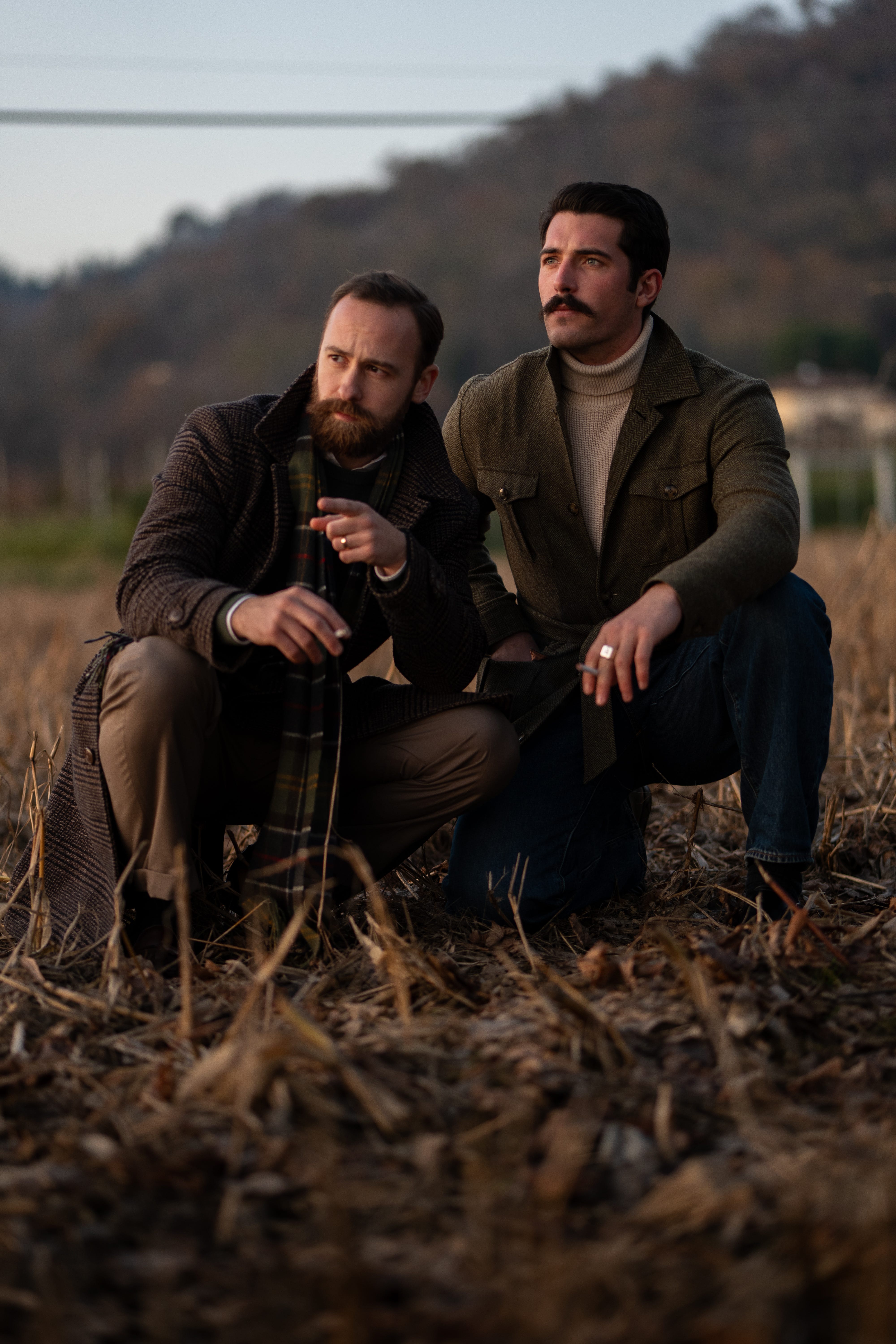 Now of course, this is not to say that everything that doesn’t fit perfectly into these proportions looks bad. My friend Vincent, standing to the left of me, is wearing a jacket which clearly doesn’t follow this rule of thirds. Yet even here, Vincent’s high-waisted jeans partially compensate for this: if his jeans were to sit at his natural waist, he would look more split in two. But because of the added height of his trousers, the jacket appears to overlap more than it actually does, and thus the unpleasant visual division into halves is mitigated.