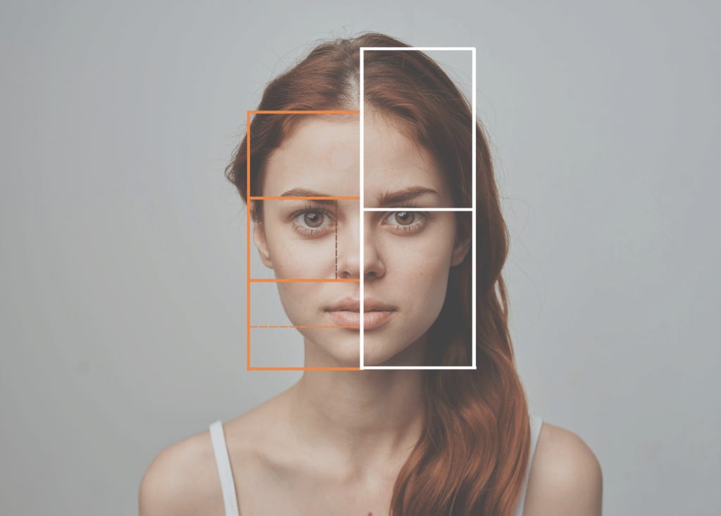 In the image above, there are two main ways of viewing the human face. The white rectangle divides the face into halves, while the orange divides it into thirds. The white parameters feel rote and mechanical, as if they’ve been imposed onto the face. The orange parameters, on the other hand, are rich with information, and appear to genuinely describe the face they’ve been drawn over.